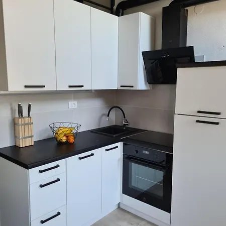 Studio Apartman "In" - Terasa & Parking ferielejlighed ligger 3 km fra Maria Bebudelses Kirke og tilbyder indkvartering med Wi Fi i offentlige områder. Ferielejligheden indeholder 1 soveværelser, et fuldt udstyret køkken og 1 badeværelser.